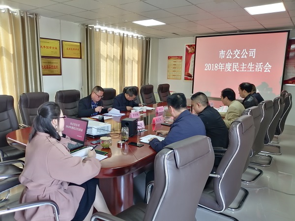 2019年3月18日,市公交公司召開了“以強化創(chuàng)新理論武裝,樹牢‘四個意識’,堅定‘四個自信’,勇于擔(dān)當(dāng)作為,以求真務(wù)實作風(fēng)堅決把中央決策部署落到實處”為主題的民主生活會。黨委書記、董事長張曉強主持會議,市公交公司全體領(lǐng)導(dǎo)班子和黨委委員參會。市國資委監(jiān)事會主席李世吉、副科級監(jiān)事羅全利到會指導(dǎo)。