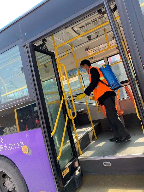安排專(zhuān)人對(duì)公交站臺(tái)、車(chē)輛內(nèi)部進(jìn)行消殺滅菌工作
