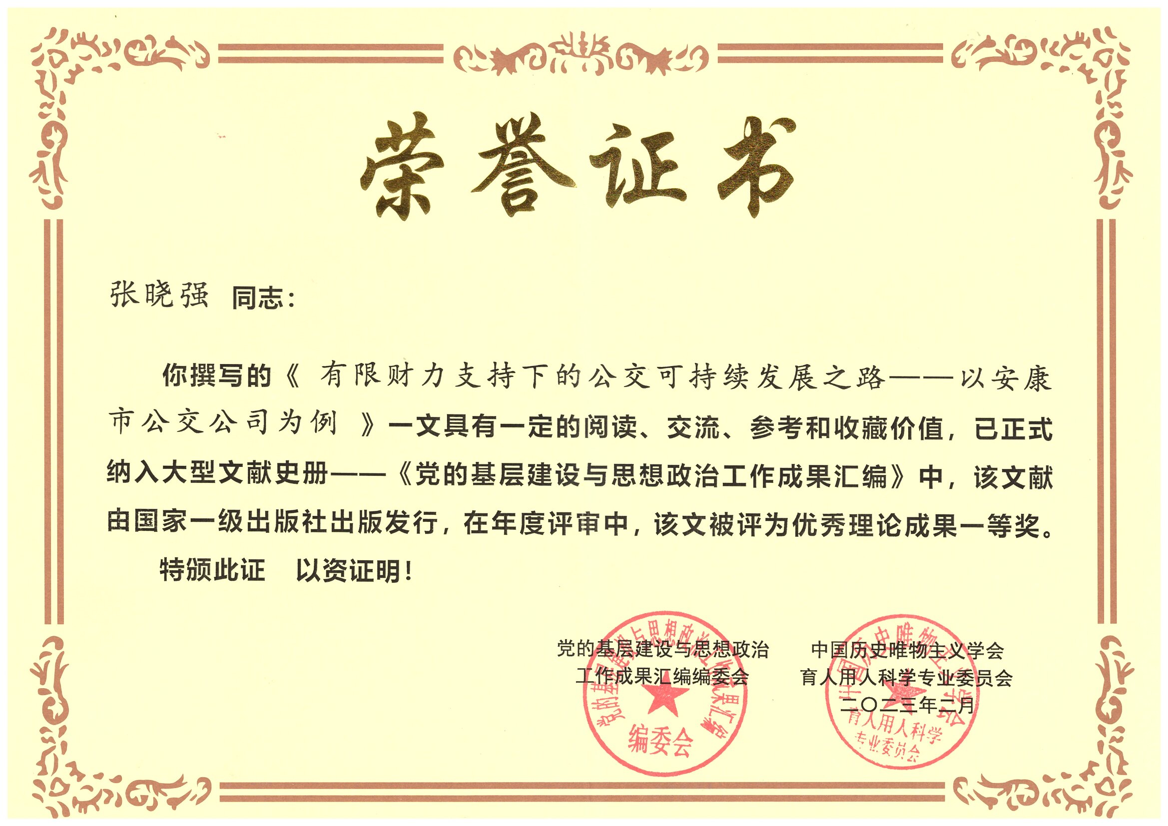 近日,在城市公共交通雜志刊發(fā)的《有限財(cái)力支持下的公交可持續(xù)發(fā)展之路——以安康市公交公司為例》文章已正式納入大型文獻(xiàn)史冊(cè)——《黨的基層建設(shè)與思想政治工作成果匯編》中,由中共中央黨校出版社出版發(fā)行。