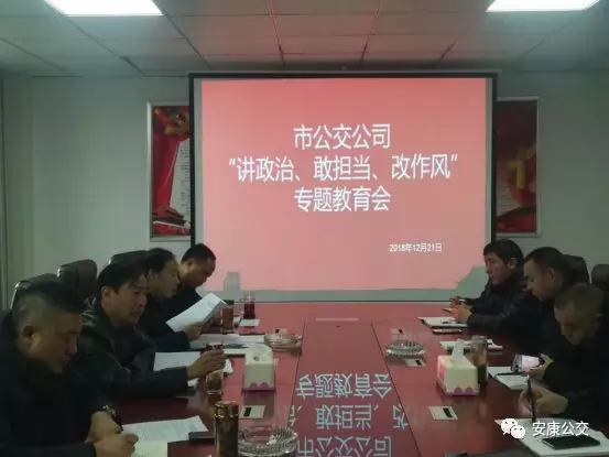 12月24日上午,市公交公司黨委召開“講政治、敢擔(dān)當(dāng)、改作風(fēng)”專題教育會,黨委書記、董事長張曉強主持會議并講話,公司黨政領(lǐng)導(dǎo)班子成員參加會議,中層以上干部列席會議。會議傳達(dá)學(xué)習(xí)了市國資委《關(guān)于在全市工信(國資)系統(tǒng)領(lǐng)導(dǎo)干部中開展“講政治、敢擔(dān)當(dāng)、改作風(fēng)”專題教育實施方案》、市紀(jì)委《關(guān)于集中開展違規(guī)收送禮金問題專項整治的工作方案》《關(guān)于集中整治形式主義、官僚主義的工作安排》等文件。